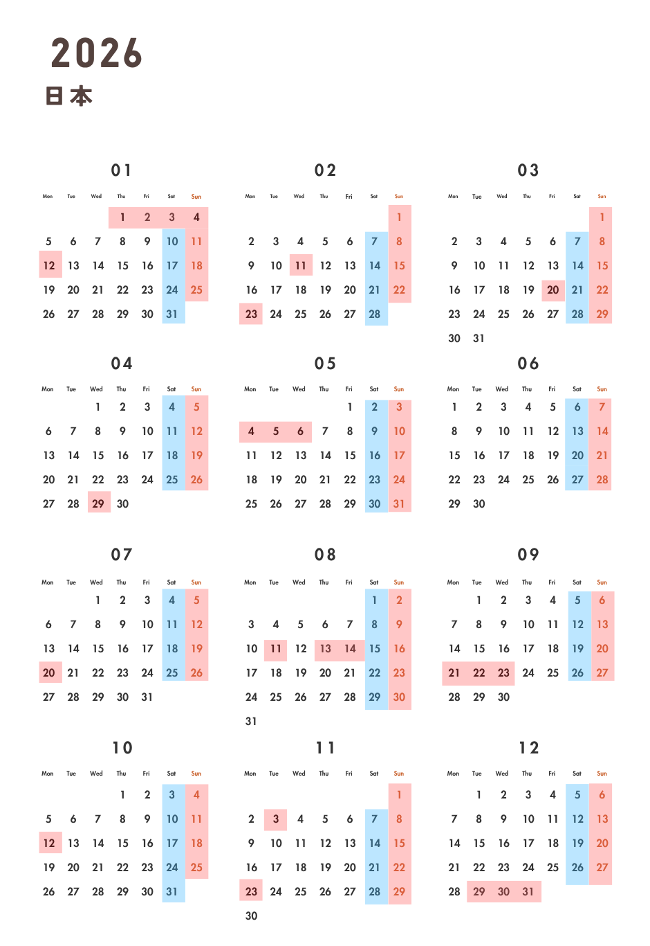 2026年度 定休日